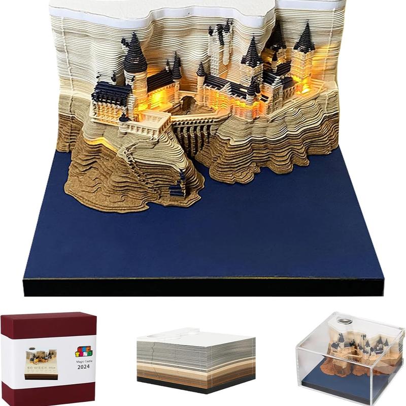 • 2024 Newest Hogwarts Castle 3D Memo Note Calendar with Upgraded Packing, Collection A Halloween Gift For Your Friends