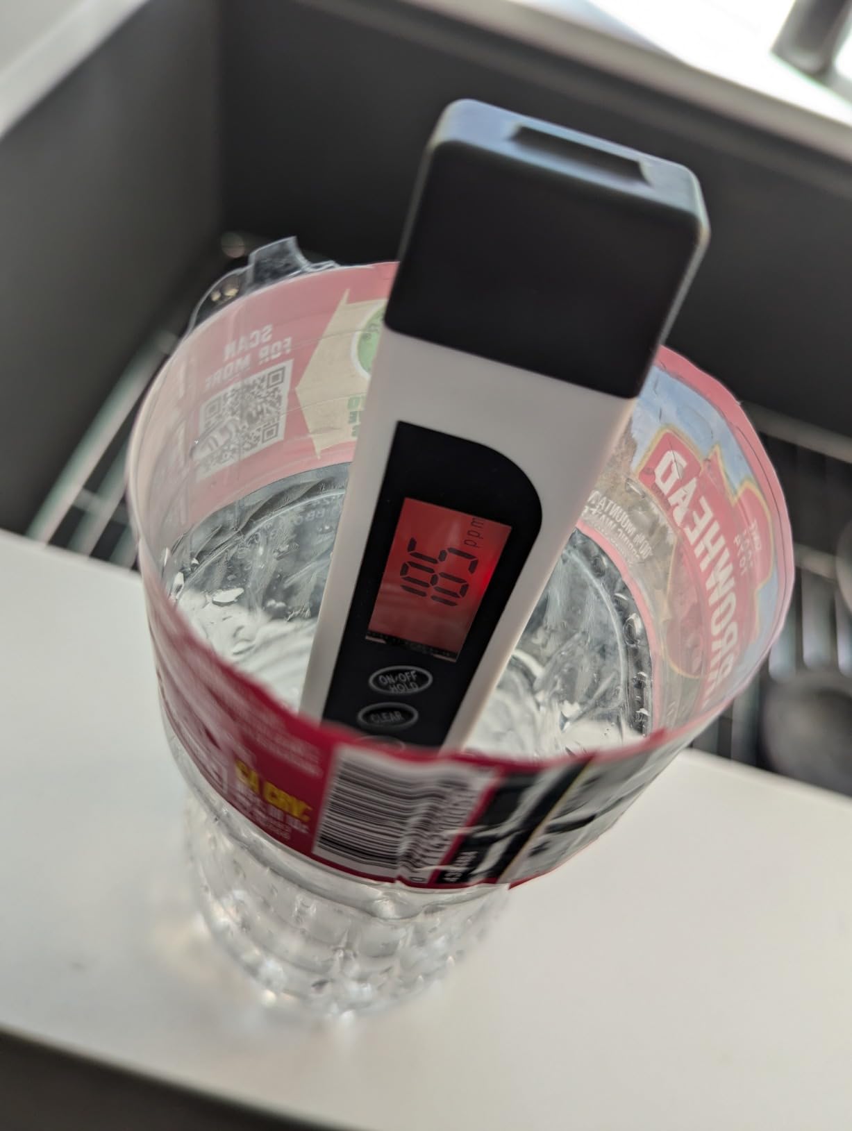 I decided to test my Brita water filter to see it it's actually filtering my tap water. I compared it against distilled water which was a 1. Then filtered water from a local water filling station which was a 5. Then tap water at a whopping 266. Lastly the Brita filtered tap water came to 227. So much for filtering out the contaminants.