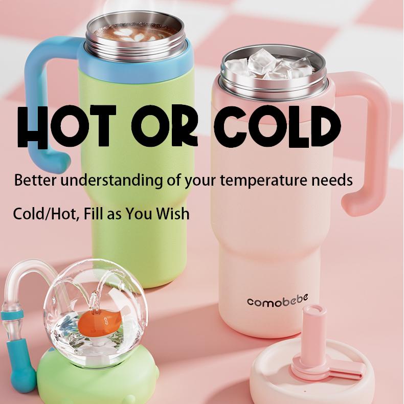 [Leak and Spill Proof] Features an integrated sealing ring and straw cover. The sturdy flip-top lid and cross-cut straw design make storage hassle-free, preventing spills, leaks, and messes[Easy to Use] Comes with 2 lids (fountain lid and straight-drink lid) for dual drinking modes, adding fun and versatility. The ergonomically designed handle makes it easy to grip and drink from any angle. The silicone base reduces noise prevents slipping, and adds stability. A built-in anti-colic valve minimizes discomfort and choking risksBrand: comobebeCapacity: 710ml/24 oz.About This ProductMaterials: Stainless steel, Silicone, PP