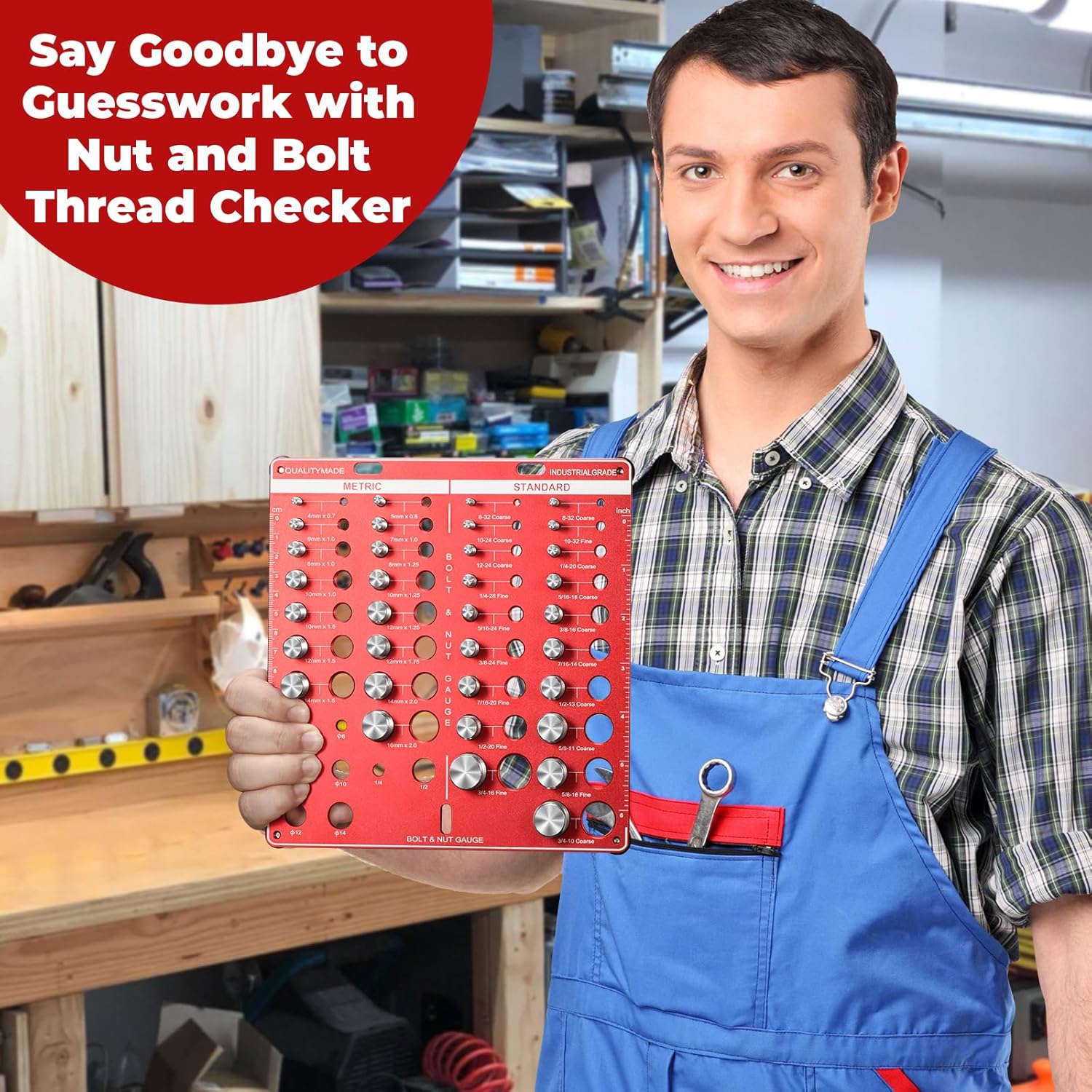 42 Nut and Bolt Thread Checker - 19 Standard and 15 Metric Bolt Checker and 8 Drill Bit Gauge,Bolt Size and Thread Gauge,Wall-Mountable Bolt and Nut Identifier Gauge