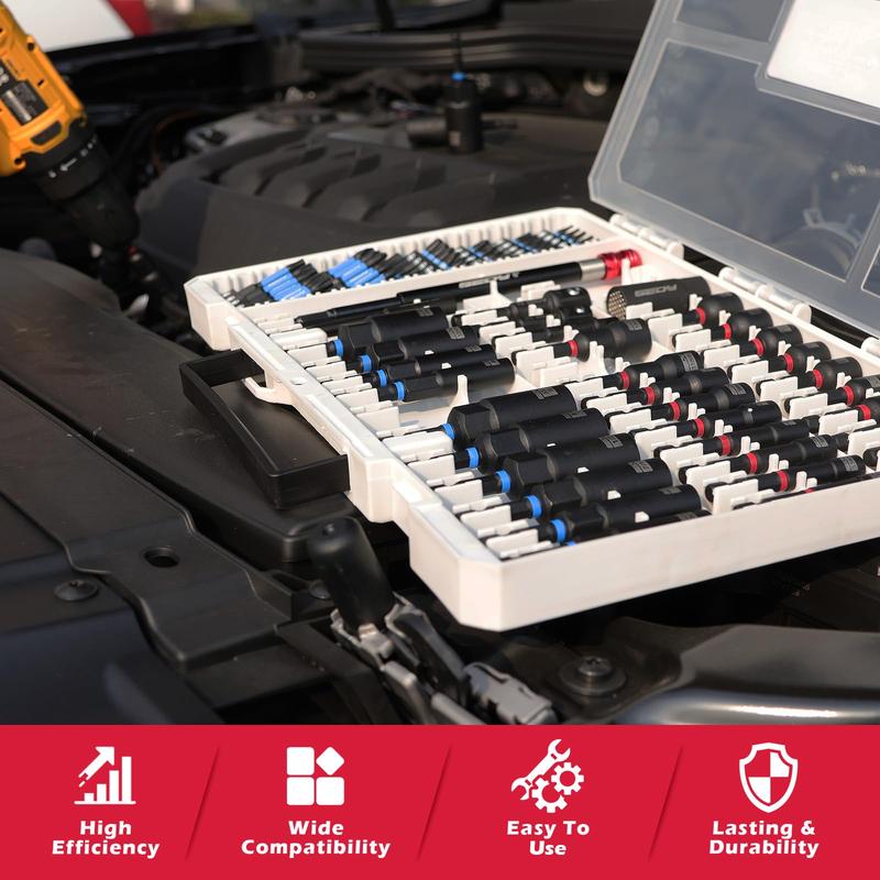 • 80-Piece Magnetic Impact Nut Driver Set Metric & SAE with Socket Adapters, Bit Holder, Wing Nut Driver, Universal Sockets, Quick Release Extension,