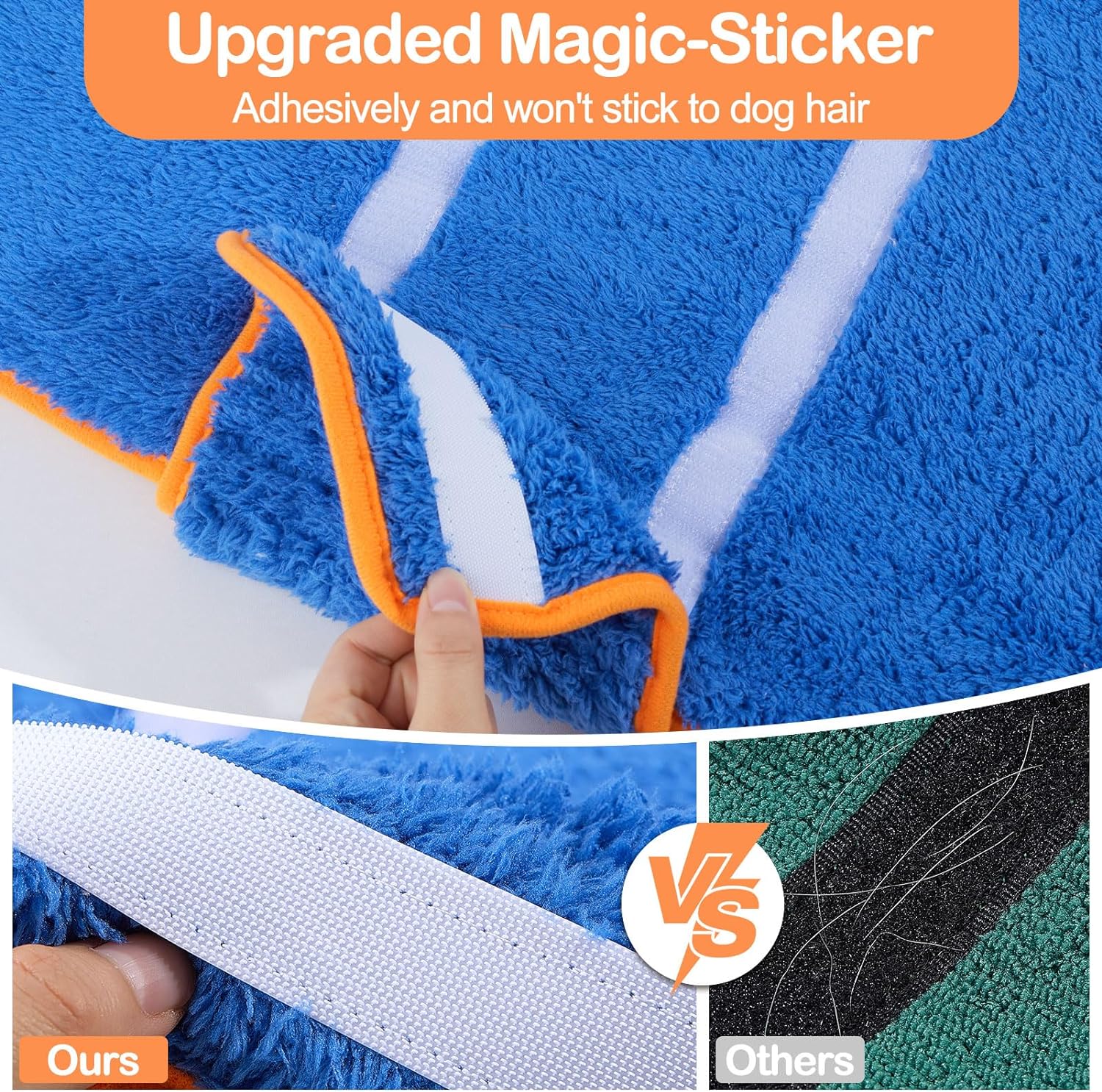 - Adjustable: Our dog towels are made of magic-sticker,it will not easy to stick dog hair, besides the sticker can make it easier for dogs to put on and take off the pet bathrobe, adjust the tightness, and make the dog bath towel more fit and comfortable