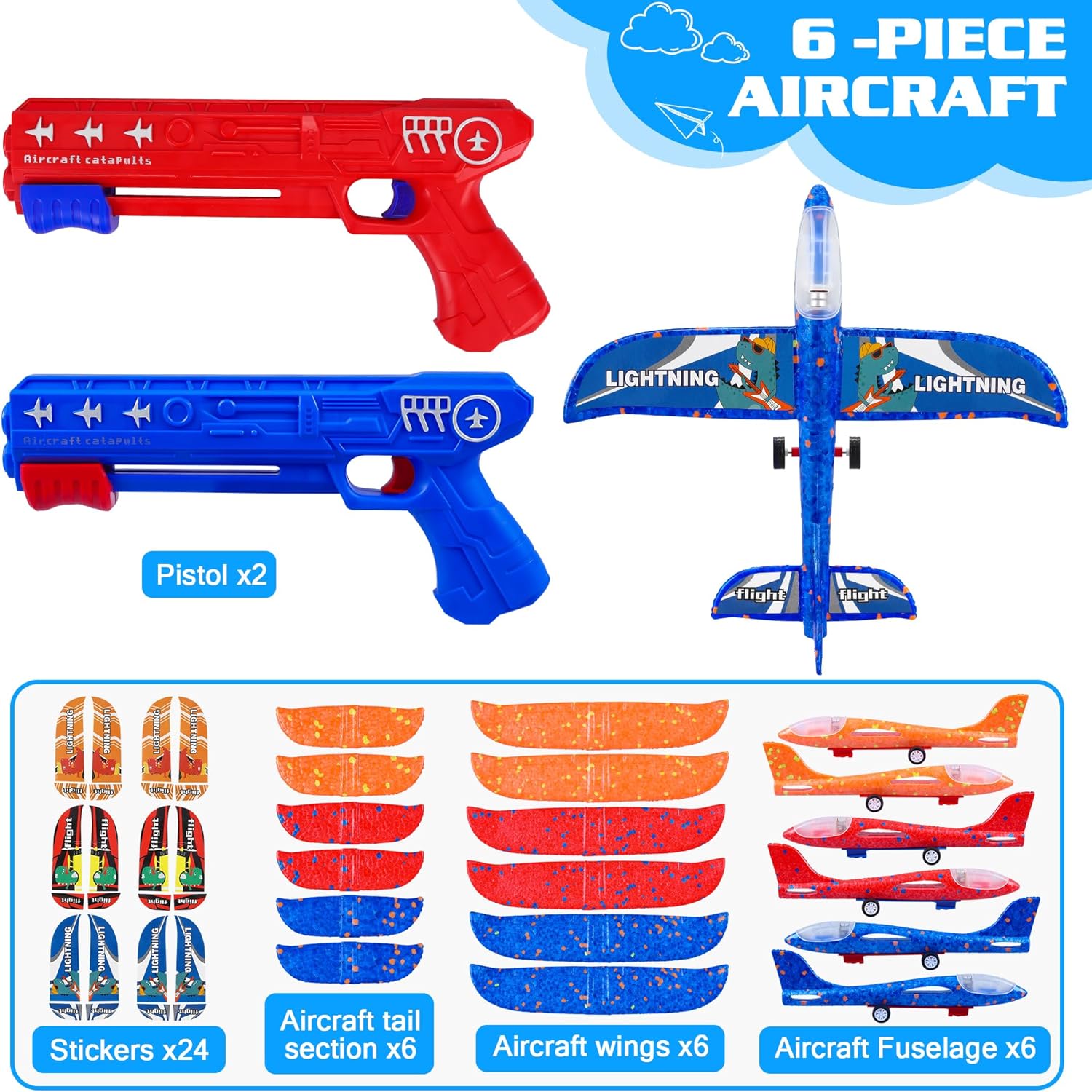 2 in1 Airplane Toys - Our glider boy toy is equipped with 3 different colors of gliding foam planes and 2 different colors of plane launchers. By throwing planes by hand or flying them with the launcher, kids can cultivate their hand-eye coordination, observation, and sense of direction
