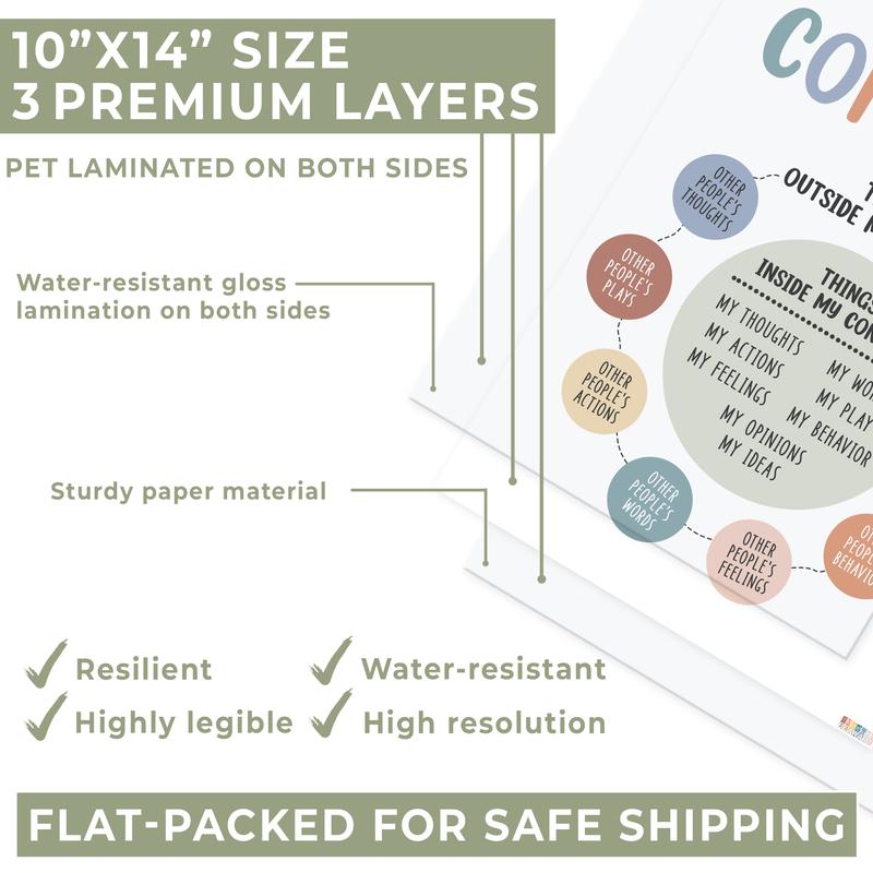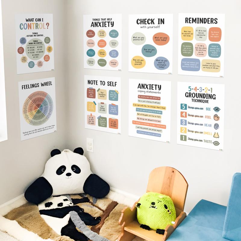 • Support In Reducing Stress And Enhancing Mental Health: Feelings Wheel Poster, Posters About Self-care, Anxiety Coping Statements, or 5-4-3-2-1 Grounding Technique can help viewers reduce stress, Anxiety, and improve their mental health - Provides tools and tools to reduce stress and anxiety, helping users to manage their own psychology and mental health more effectively.