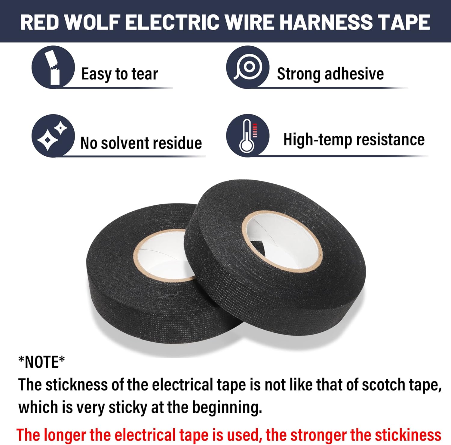 - Excellent performance: The wiring harness tape maintains features high adhesive force, good noise reduction, hand tearable and heat insulation performance, and wear resistance; It is suitable for electrical automotive engine and circuit maintenance to achieve the purpose of insulation protection