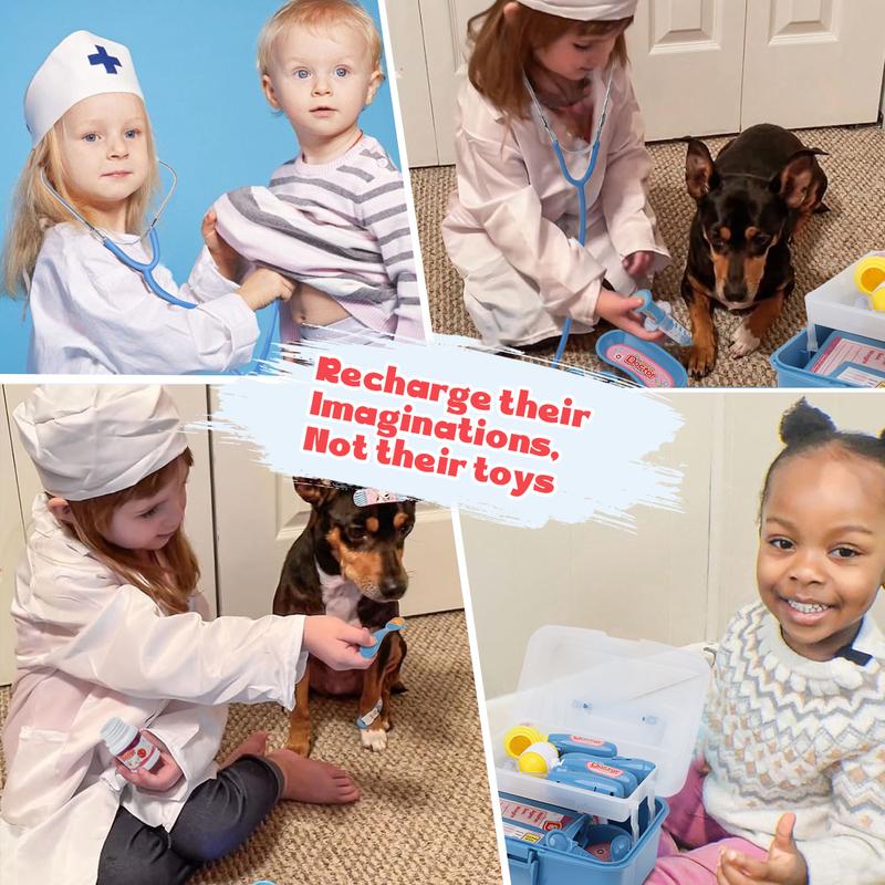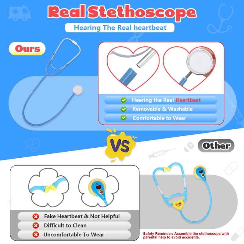 - 【EDUCATIONAL DOCTOR PLAYSET FOR KIDS】The doctor pretend play can not only stimulate kids’ imagination and creativity, but also cultivate their compassion and foster their social skills. Kids can also comprehend the uses of different medical tools and know different body parts. Being a little doctor helps relieve children’s anxiety and alleviate their fear of going to the doctor