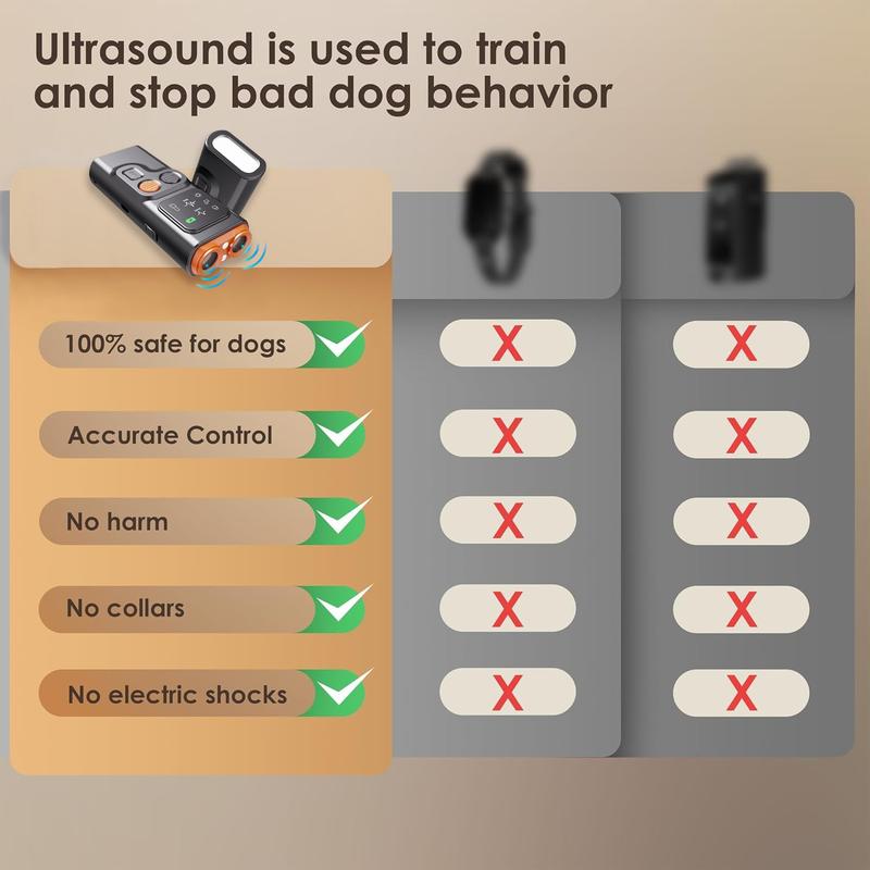 • Effective Deterrent: This upgraded anti-barking device uses ultrasonic sound and LED flashlight to humanely stop excessive barking and unwanted behavior in dogs.