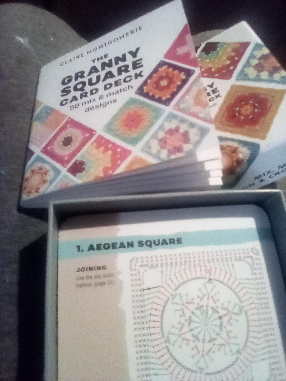 This is such a neat idea. I was very excited to get it and it is really neat and handy. There is a comprehensive booklet with instructions on stitches and reading patterns and there are 50 cards-each with a pattern to follow. The booklet explains how to read a crochet pattern so once you can read a pattern your ready to make some granny squares.