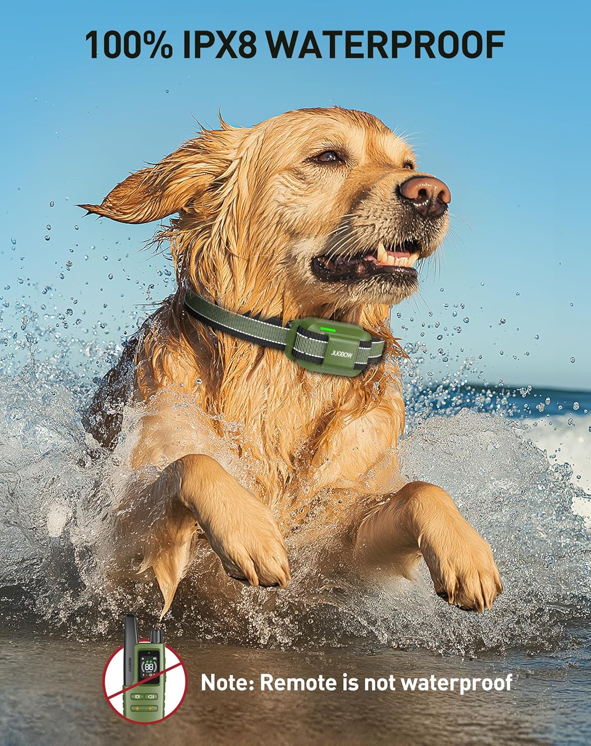 - 【IPX8 Waterproof Collar & Security Lock】The electric dog collar can be used in any weather and any condition thanks to the IPX8 waterproof design of the receiver. Instant response security on/off switch button allows you to carry it without any fear of accidental touch.