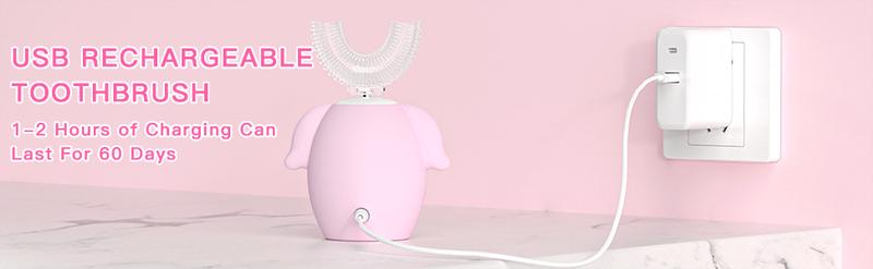Kids Electric U Shaped Toothbrush Children Rechargeable Sonic Toothbrush Toddler baby toothbrushes with1-4 Brush Heads Full Mouth 6 Cleaning Modes Oral hygiene