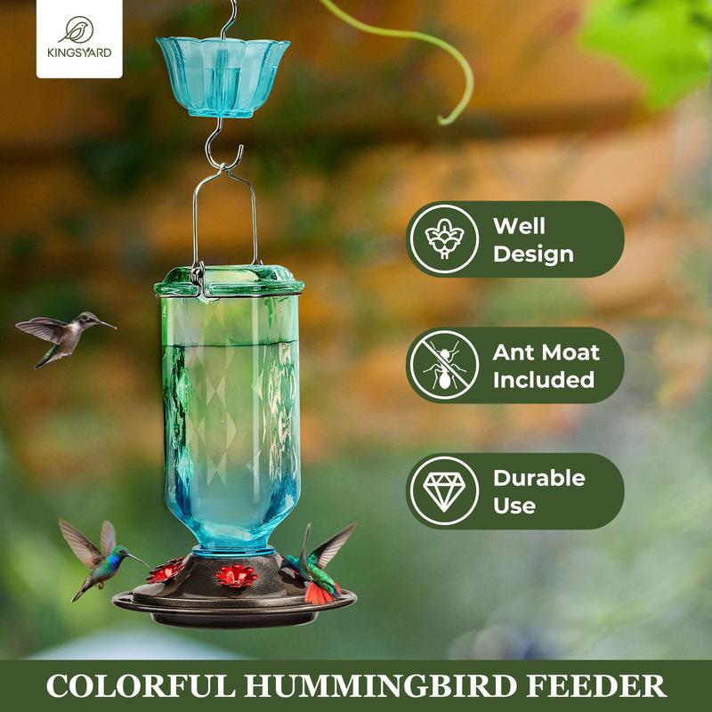 Kingsyard 24oz Glass Hummingbird Feeder for Outdoor Hanging, with Ant Moat & 6 Feeding Port,