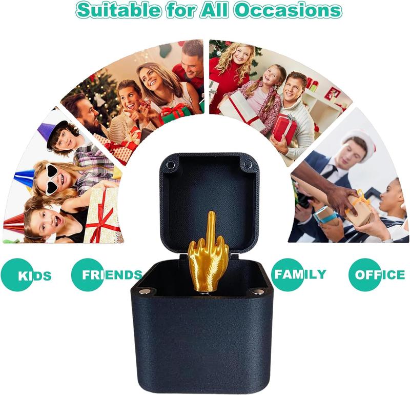【Interactive pop-up feature】 Enjoy the fun surprise every time you open the box. The middle finger figurine pops up instantly, providing endless entertainment for both adults and kids.【Durable and well-made】 Crafted with care, this middle finger box is made from sturdy plastic for long-lasting use.lts quality ensures the figurine and box hold up to regular use.【Compact and portable】 This small yet impactful prank item is easy to carry and display, making it the perfect accessony for offices, homes, or pranks on the go.