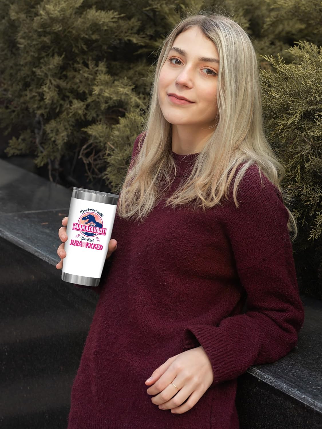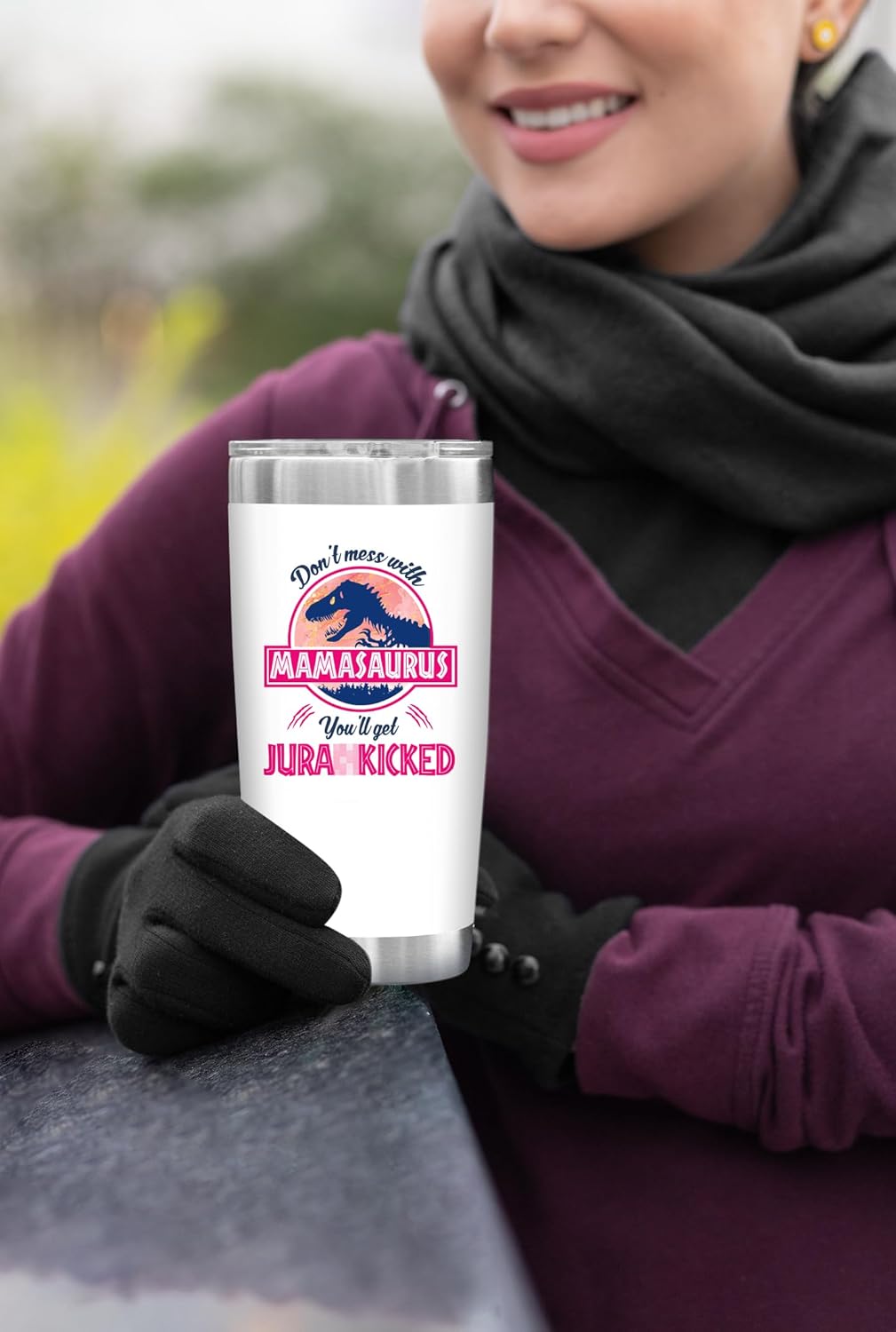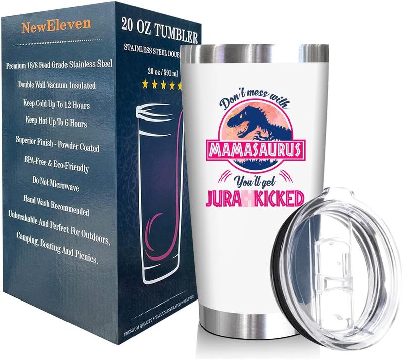 • FUN WINE TUMBLER FOR MOMS – This cute drink tumbler features Don’t Mess with Mamasaurus to make her smile with every sip! It’s also just the right size for red or white wines, fresh-brewed coffee, or a tangy mojito.