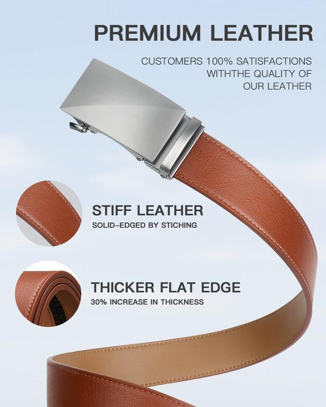 Premium Leather Slide Ratchet Belt with Adjustable Automatic Buckle