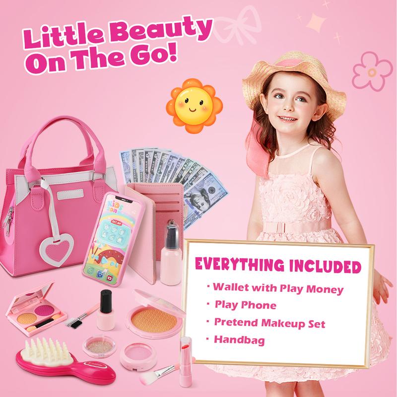 Safe and Stylish: Designed with child-safe materials and smooth edges, this purse set combines safety with fashion, appealing to young fashionistas for daily play.Skill-Building Fun: More than just play, this set serves as a mini classroom, teaching money management, social etiquette, and self-care through engaging activities.Perfect Gift for Girls: Ideal for teaching financial literacy and social skills, this purse set makes a wonderful gift for girls aged 3-6 on any special occasion.