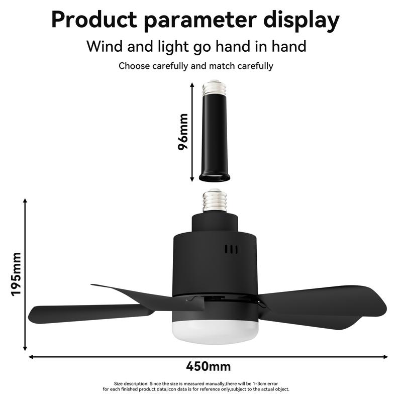 • 【2-IN-1 Socket Fan Light】 socket fan light and remote combines a high-performance fan with energy-efficient LED lighting, offering both illumination and air circulation in one sleek, modern design. Ideal for any room in your home, including kitchen, bathroom, offices, closets, bedrooms, living rooms, or other small spaces. Enjoy the convenience of a single, stylish light socket ceiling fan fixture that enhances both comfort and decor without the need for separate products.