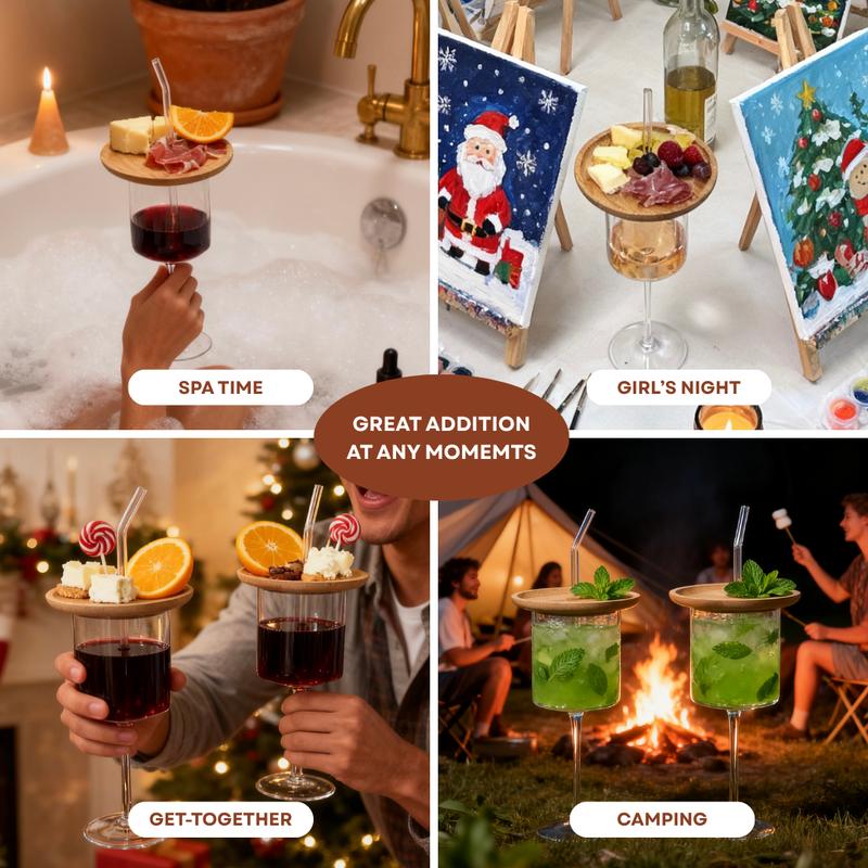 The glass doubles as an appetizer plate, making it versatile for various occasions. Enjoy your wine and snacks in style!Features:·Charcuterie Topper: Adds a touch of elegance to your wine tasting.·Straw Included: Perfect for sipping your beverage with ease.·Versatile Use: Ideal for family gatherings, girls' nights, and bars.