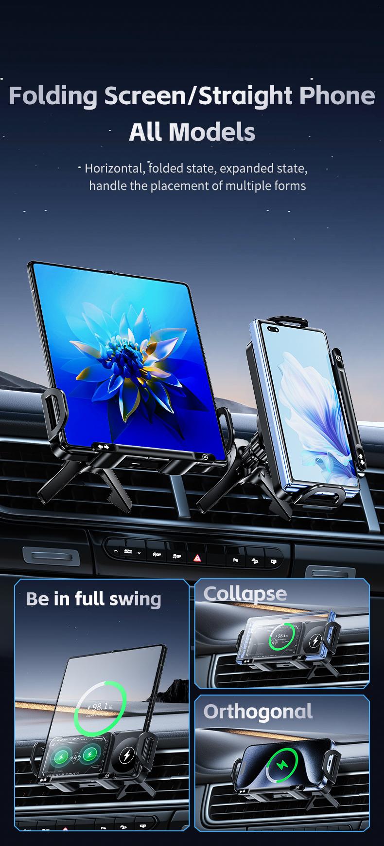 Wireless Charging Phone Holder Car Mount for Folding Screen/Universal Smartphone